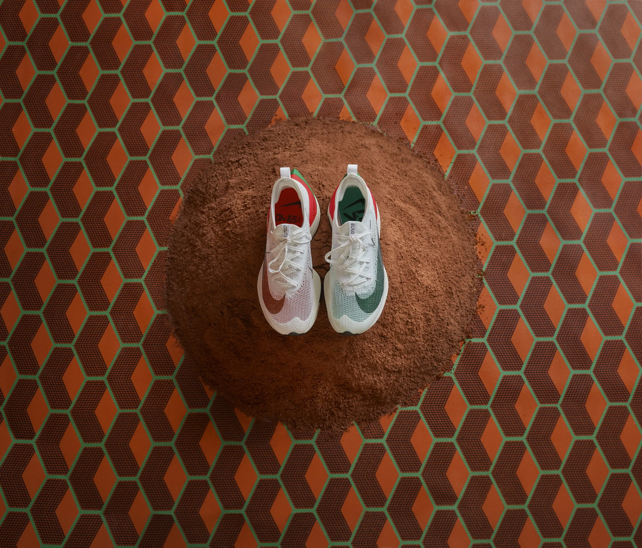 Concept: From Eldoret to the world. The concept was to bring a piece of Eliuds heritage (Eldoret and Kaptagat, Kenya) to the world stage but in a beautiful and simple way to reflect his humble and wise character.